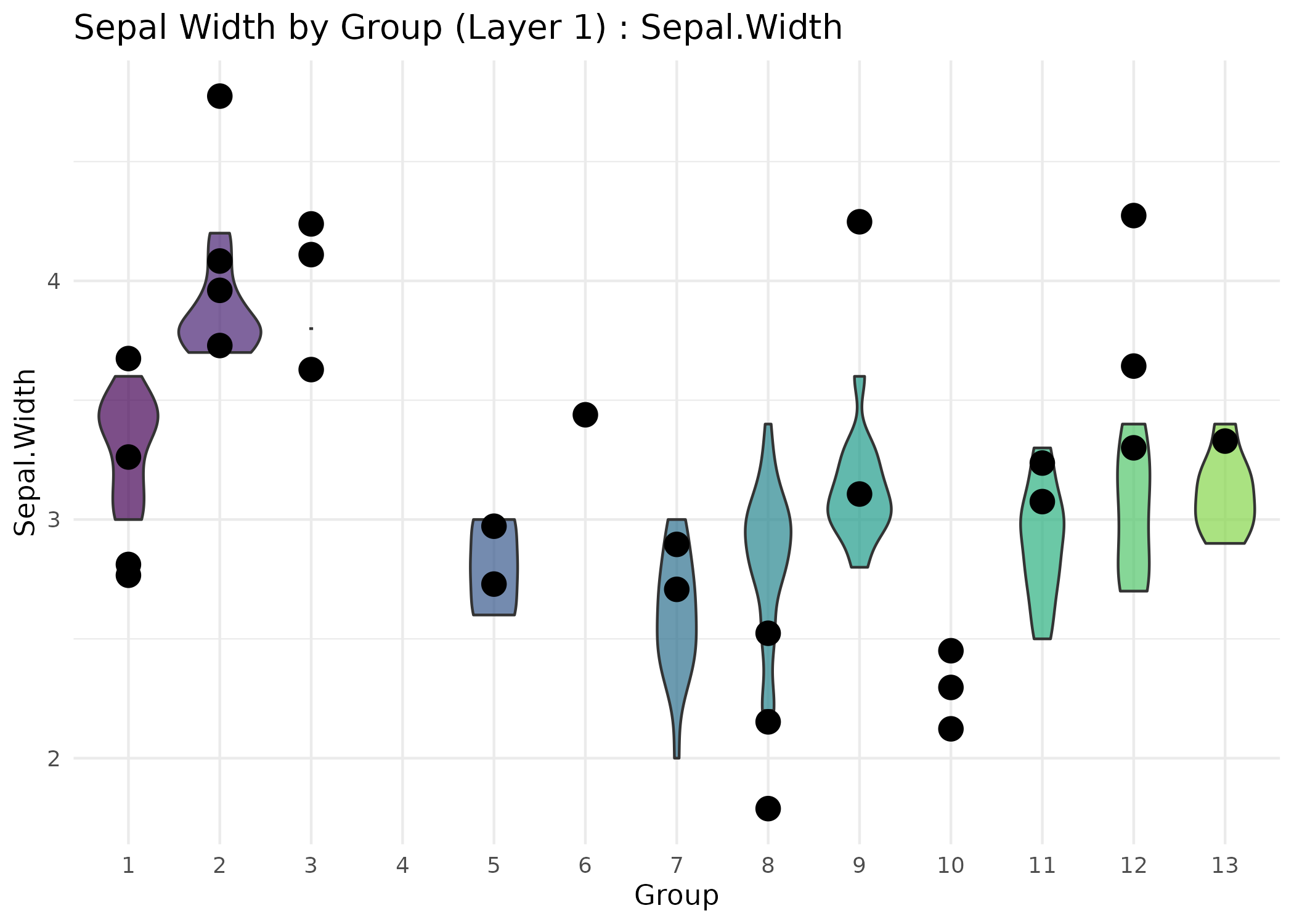 title = "Sepal Width by Group (Layer 1)",