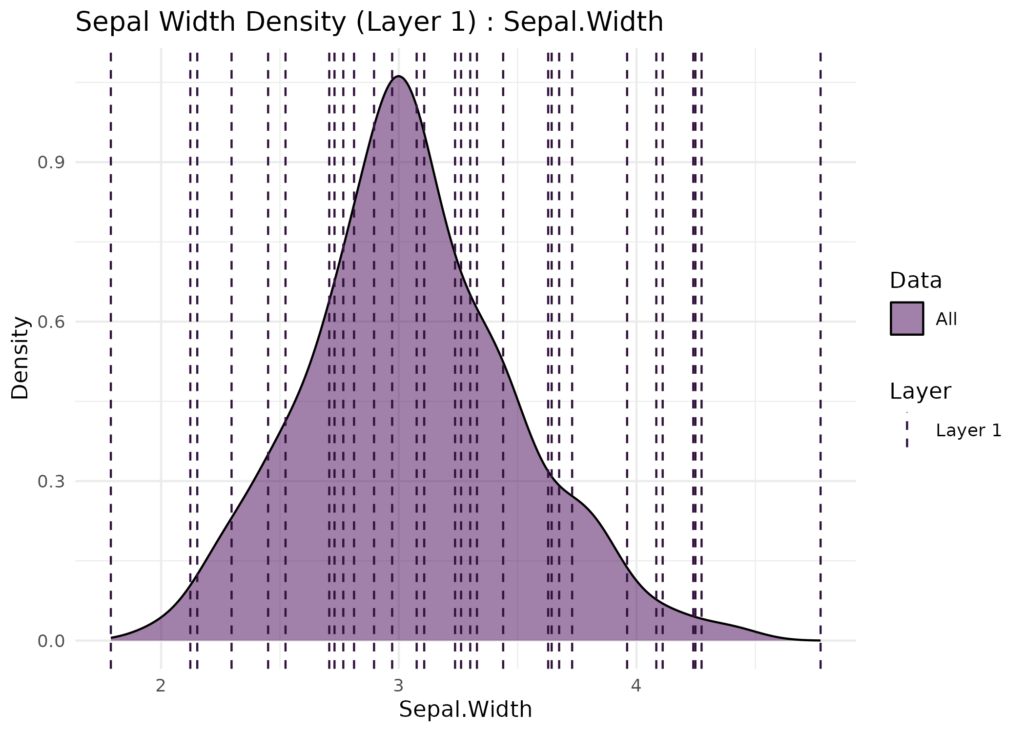 title = "Sepal Width Density (Layer 1)",